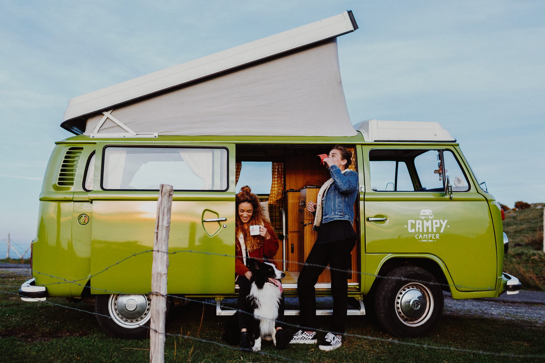 Merci Campy Camper pour ce shooting 🖤 Si vous avez un roadtrip à faire dans le Pays basque, ou que vous avez envie de louer un vieux combi pour votre mariage, je ne peux que vous conseiller ces passionnés ! Ils sont adorables et visiter le Pays basque en van aménagé c’est juste la VIE. Merci aussi à mes deux jolies modèles Laetitia et Sarah, sans oublier Sam, chien trop heureux et qui a visiblement adopté la vanlife 😂.