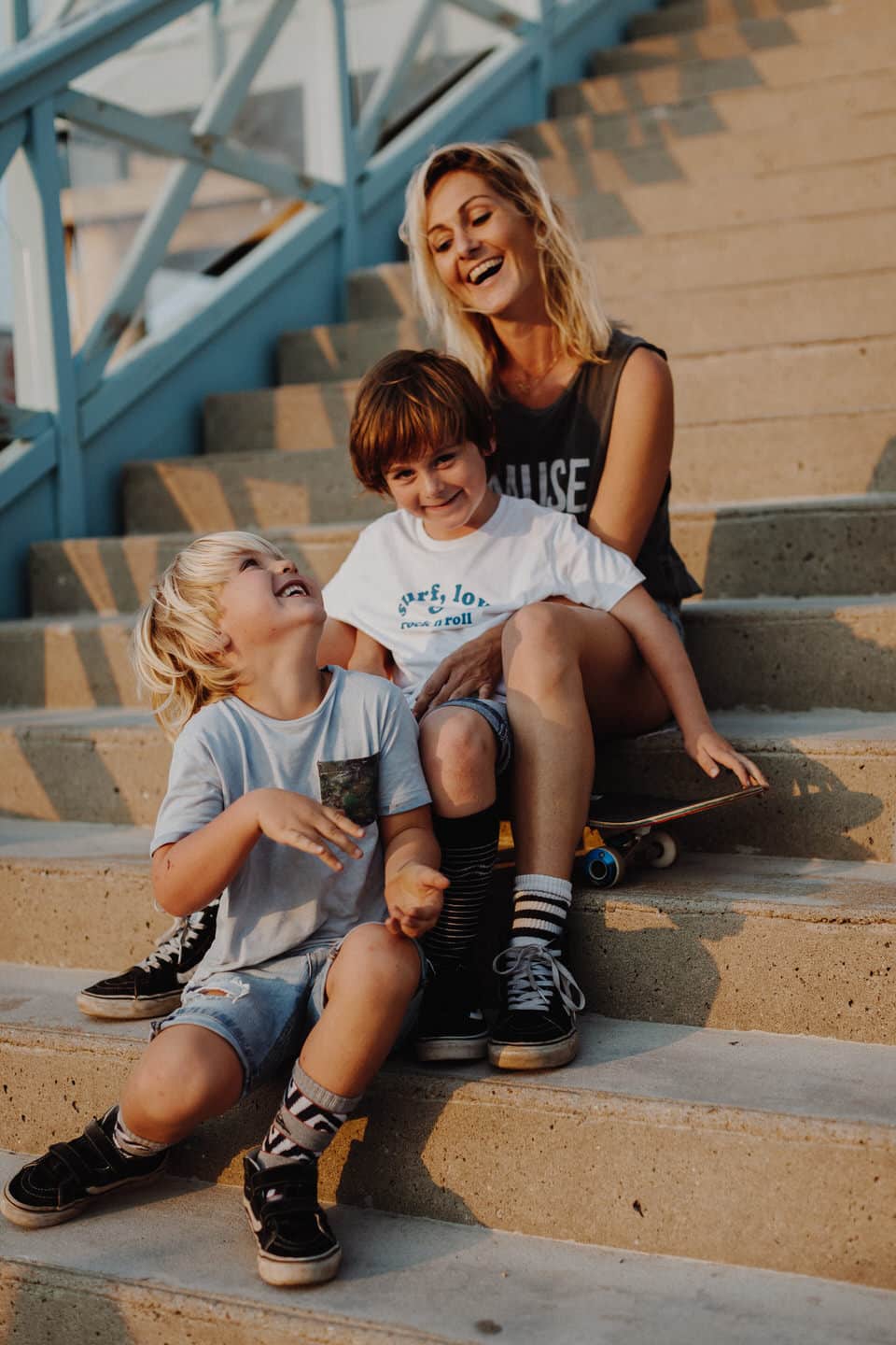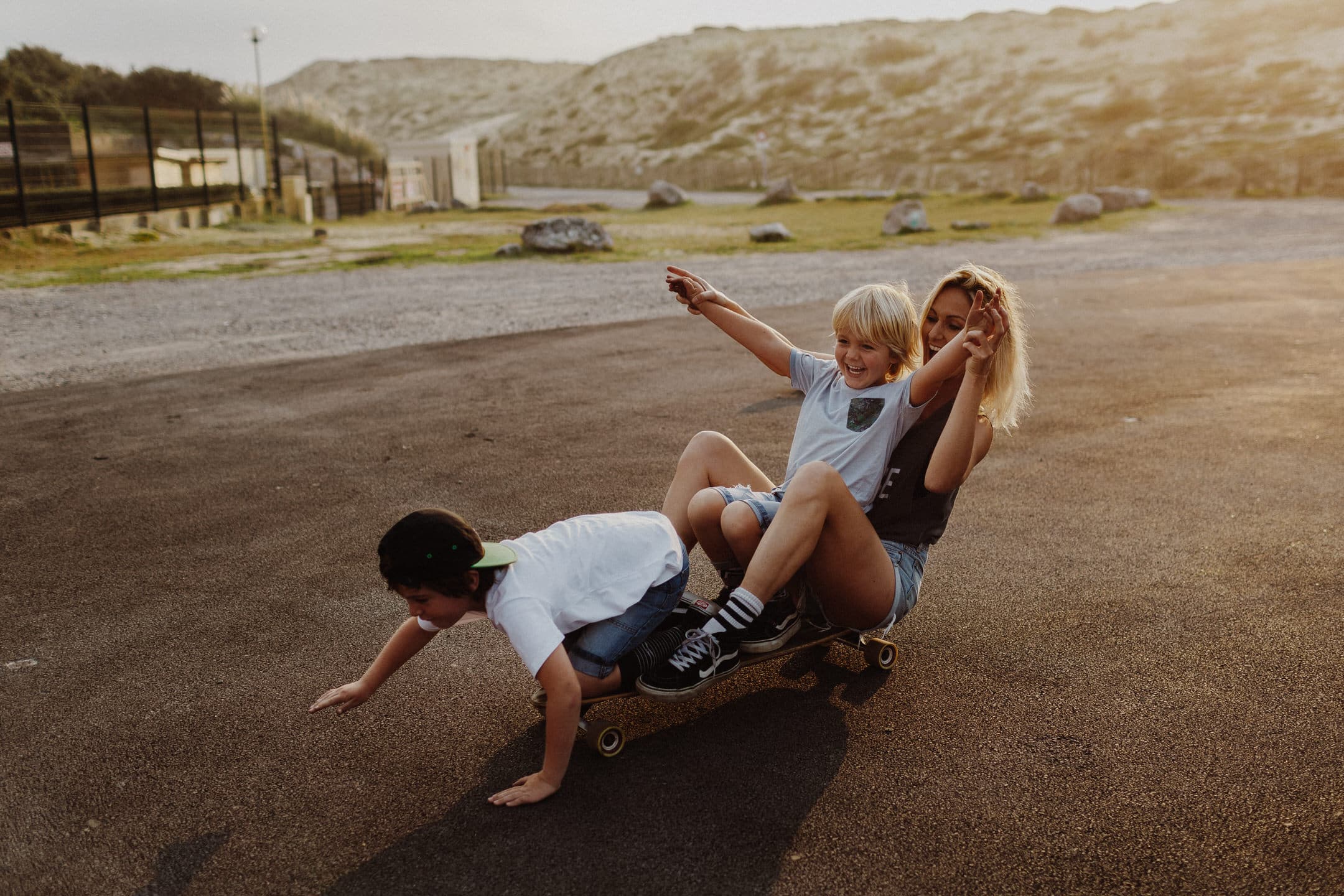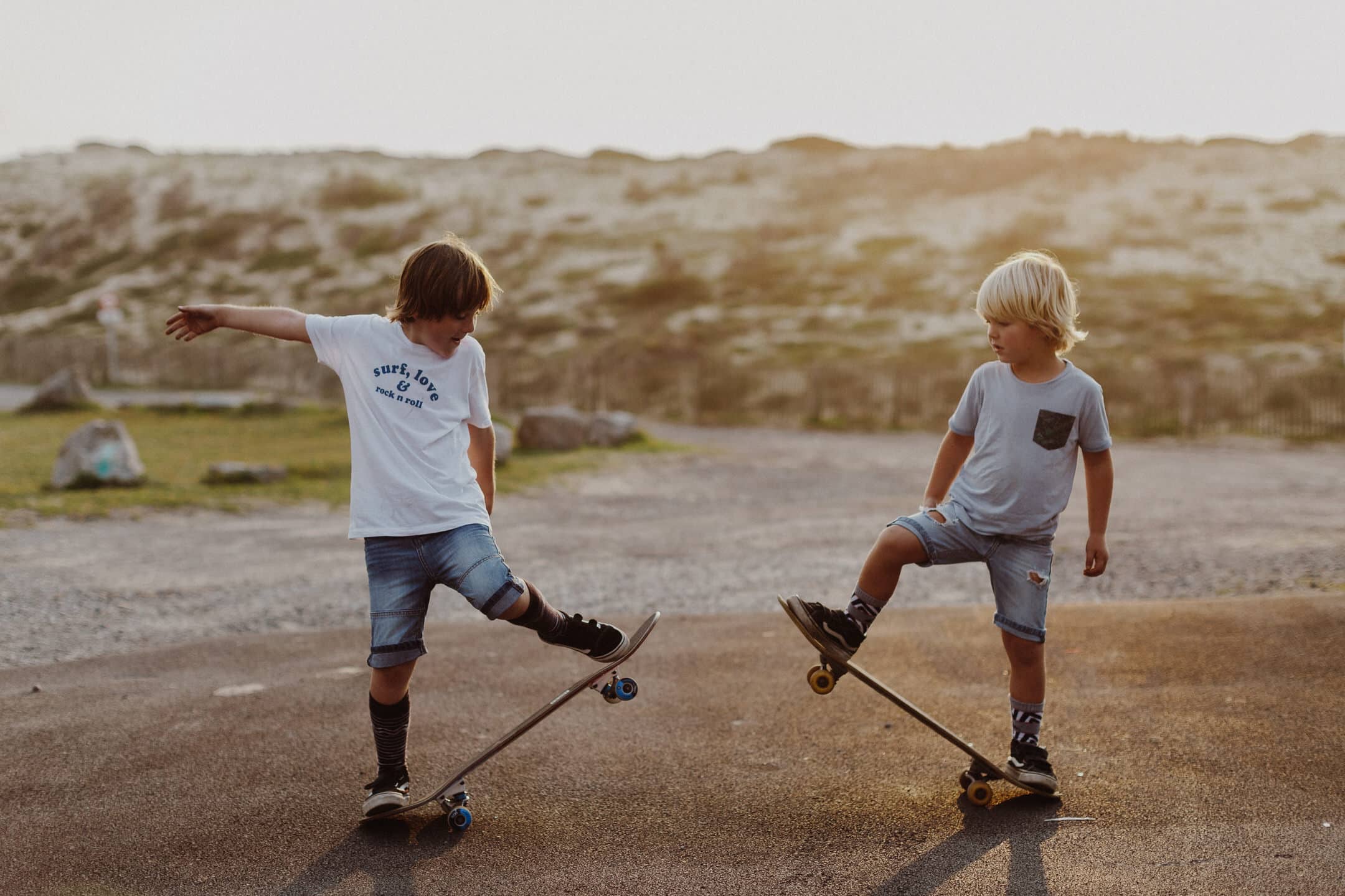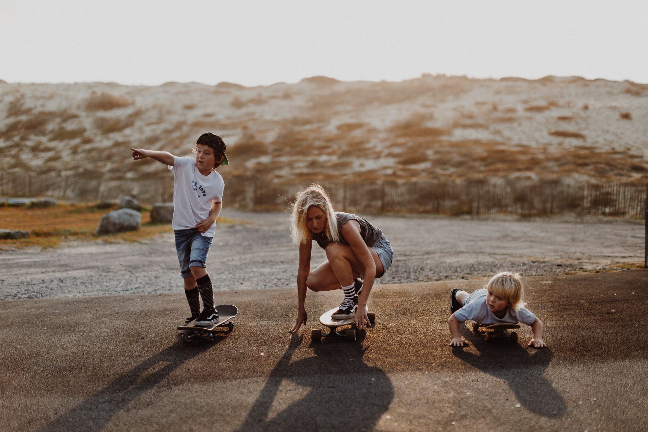 Notre rencontre ne s’est pas arrêté là. J’ai eu la chance de pouvoir la photographier avec les fameuses tornades On s’est retrouvés pour le coucher du soleil à Seignosse pour une session skate et Molky sur la plage. La lumière était dingo (comme à chaque fois dans les Landes), les garçons on vécu le moment à fond, Claire rayonne comme c’est pas permis. Bref, cette séance, j’en suis amoureuse ! On a tous fini avec une banane pas possible, c’était un joyeux bordel comme je les adore .
