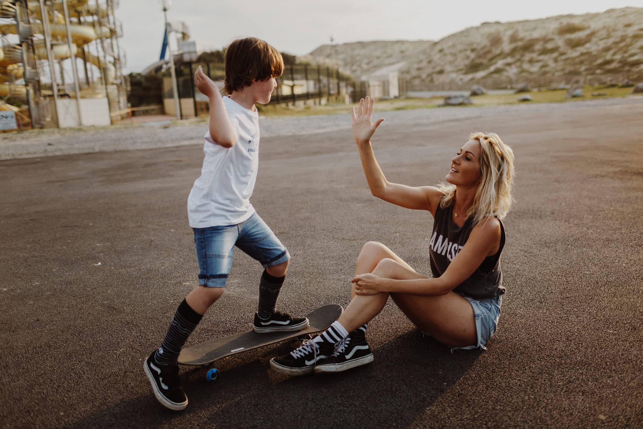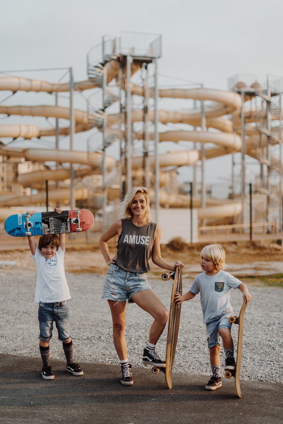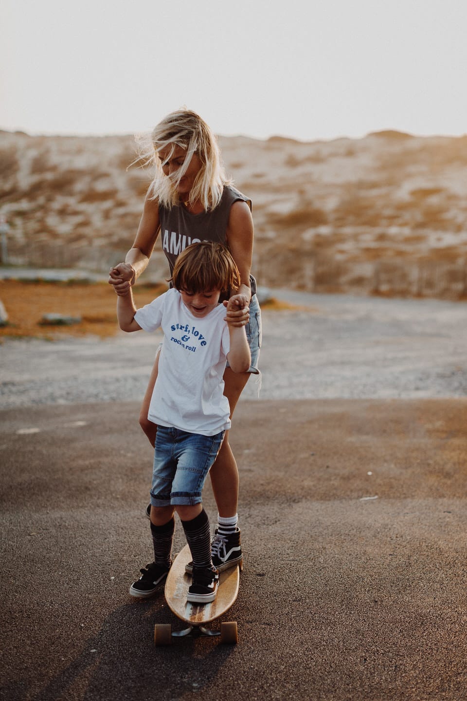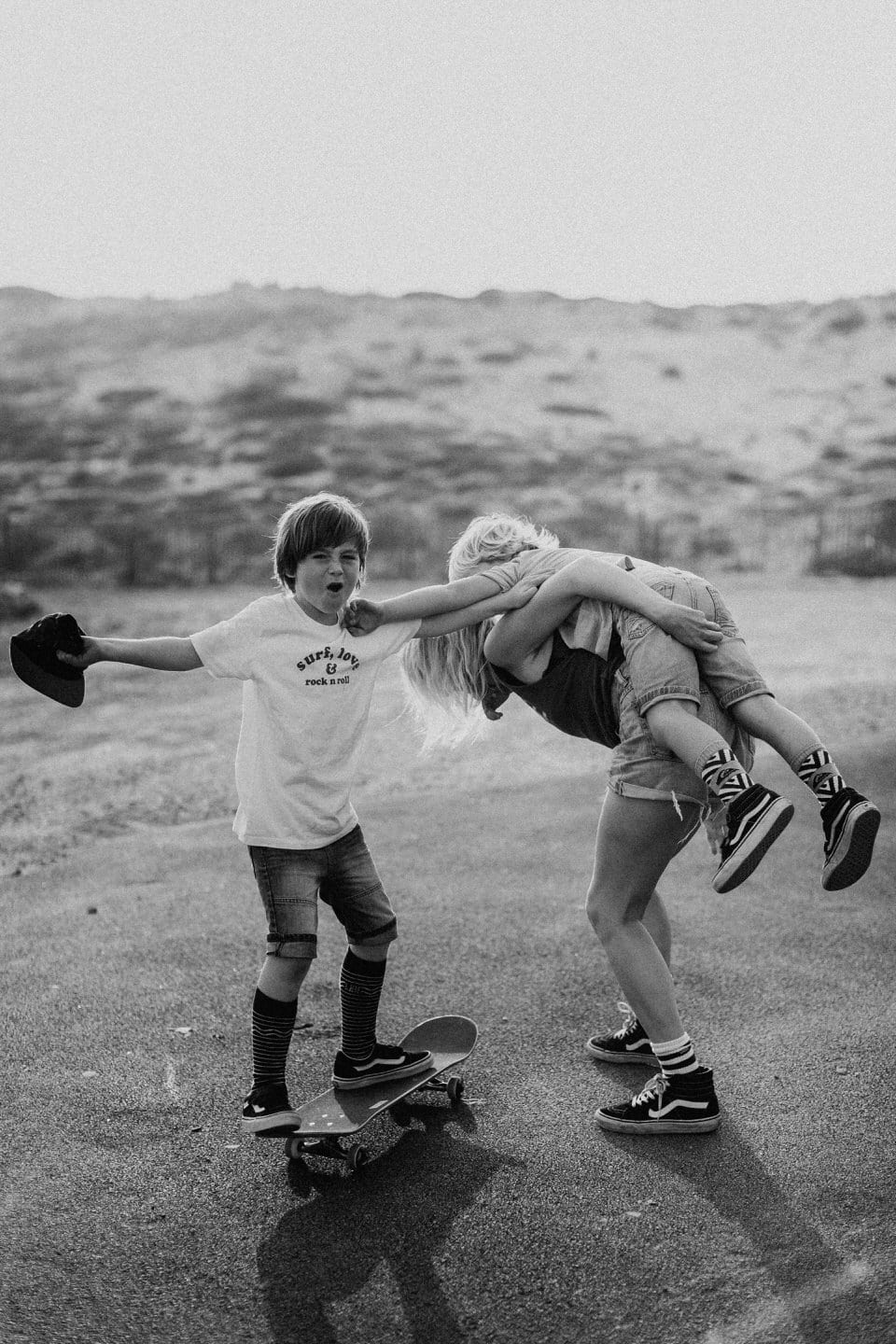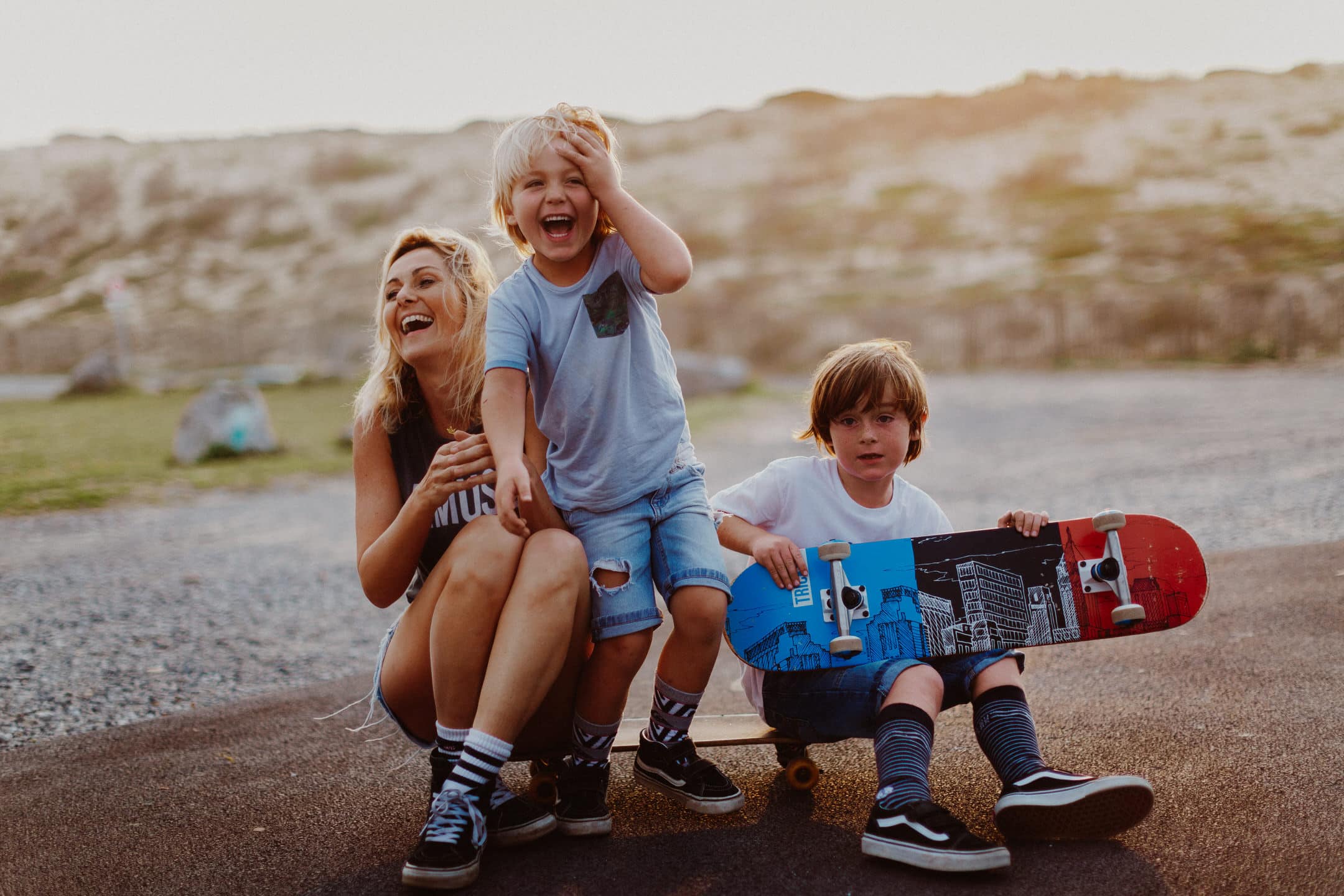 Notre rencontre ne s’est pas arrêté là. J’ai eu la chance de pouvoir la photographier avec les fameuses tornades On s’est retrouvés pour le coucher du soleil à Seignosse pour une session skate et Molky sur la plage. La lumière était dingo (comme à chaque fois dans les Landes), les garçons on vécu le moment à fond, Claire rayonne comme c’est pas permis. Bref, cette séance, j’en suis amoureuse ! On a tous fini avec une banane pas possible, c’était un joyeux bordel comme je les adore .